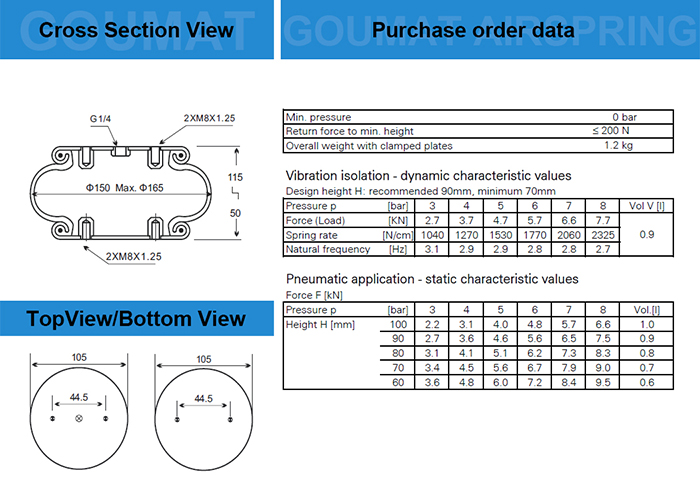 目前自產(chǎn)應(yīng)用于工業(yè)設(shè)備上小規(guī)格直徑的空氣彈簧自然外徑145MM;大一型號的1B8X4;小一型號是1B4060