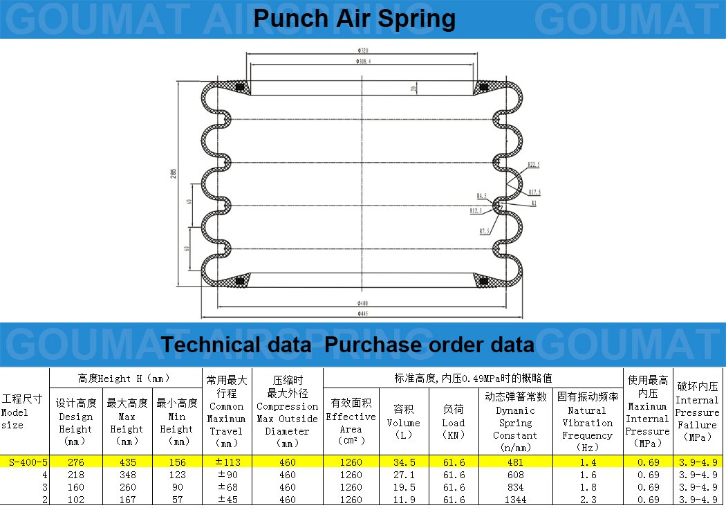 F-400-5/連接器高速沖床空氣彈簧/精密打孔機用氣囊/日本橫濱YOKOHAMA S-400-5R