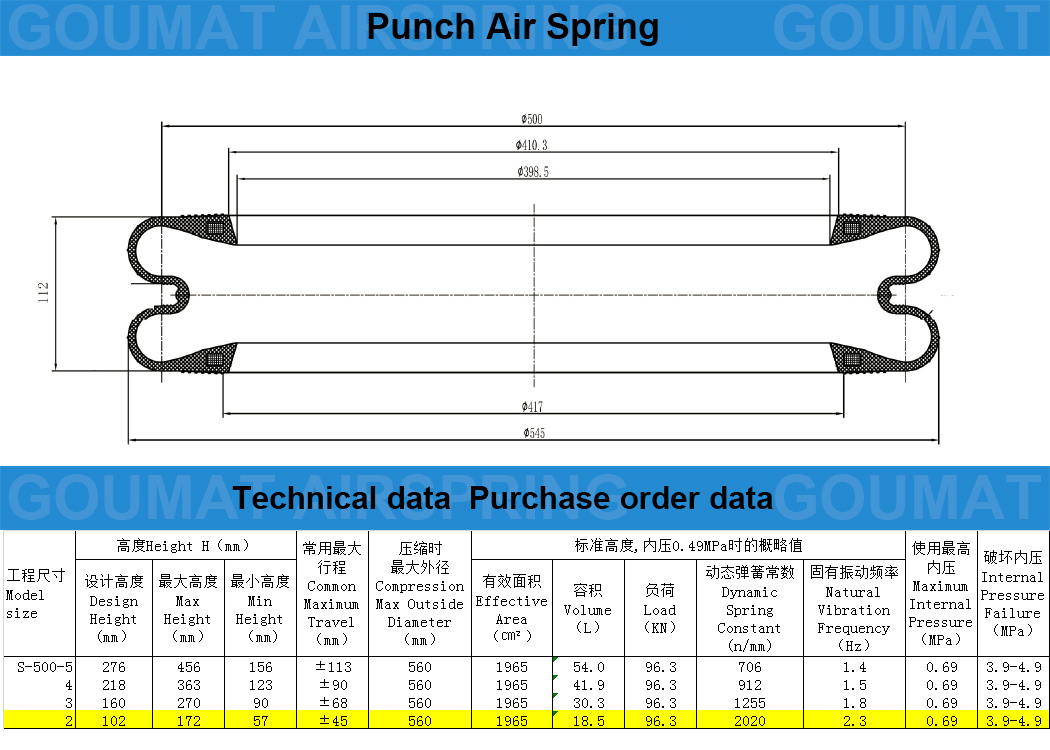 F-500-2/盆架喇叭網(wǎng)沖床空氣彈簧/可傾沖床氣囊/日本橫濱YOKOHAMA S-500-2R