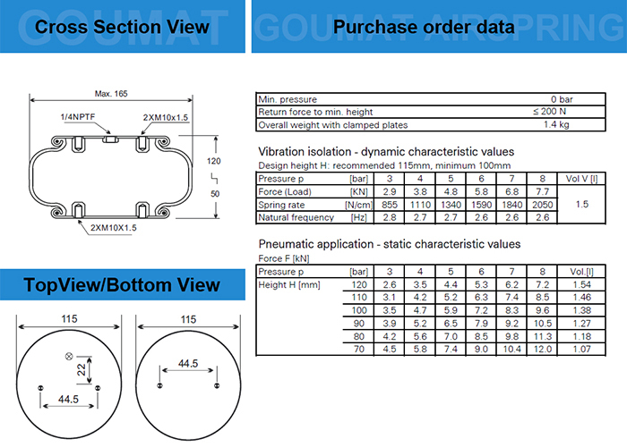目前自產(chǎn)應(yīng)用于工業(yè)設(shè)備上小規(guī)格直徑的空氣彈簧自然外徑145MM;大一型號(hào)的1B8X4;小一型號(hào)是1B4060