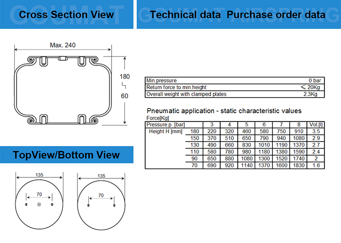 目前自產(chǎn)應(yīng)用于工業(yè)設(shè)備上規(guī)格直徑的空氣彈簧自然外徑200MM同等尺寸行程比較大的型號;同等尺寸不同行程的1B8X4;大一型號的1B6910;小一型號是1B1209