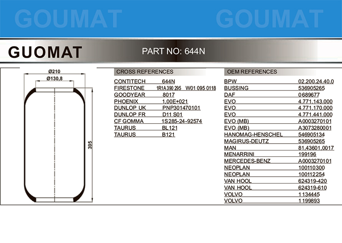 * 表示必填采購:644N/金龍客車氣囊/客車空氣彈簧/CONTITECH 644N/FIRESTONE STYLE 1R1A-390-295/W01-095-0118/PHOENIX 1E21/DUNLOP F (S