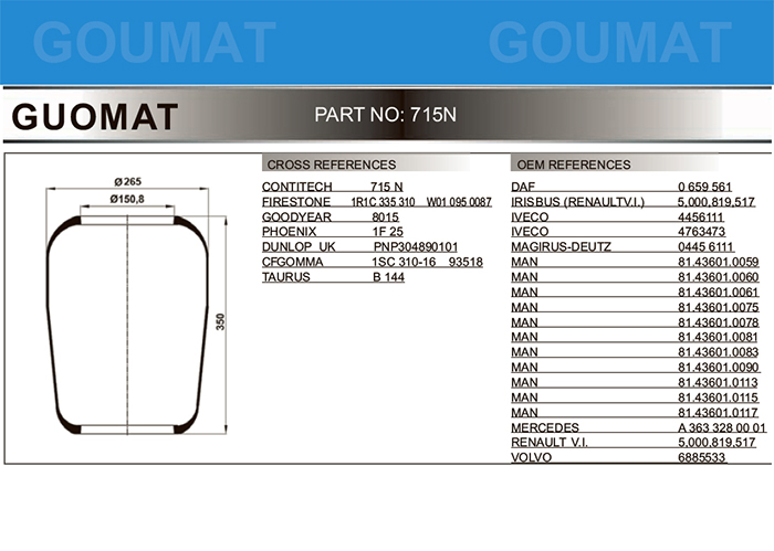 715N/五十鈴客車氣囊/科曼底盤空氣彈簧/CONTITECH 715N/FIRESTONE 1R1C-335-310/PHOENIX 1F25/DUNLOP UK PNP304890101/GOOD