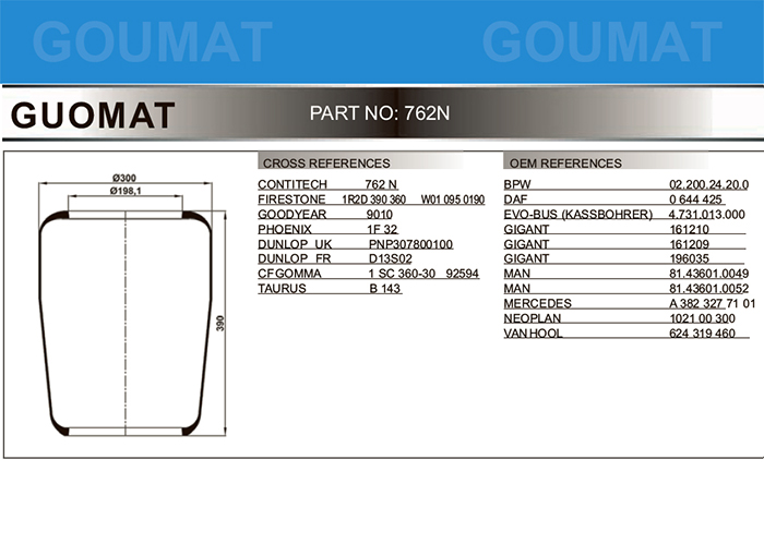 762N/北方尼奧普蘭客車氣囊/金華尼奧普蘭空氣彈簧/CONTITECH 762N/FIRESTONE 1R2D-390-360/PHOENIX 1F32/DUNLOP F (SPRINGRIDE)