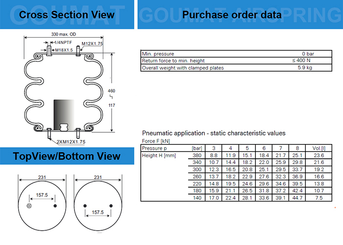 - 3B7996/三曲工業(yè)空氣彈簧/Firestone:W01-358-7996/38/Contitech:FT330-29520/Goodyear:3B12-335/Triangle:6334/4520
