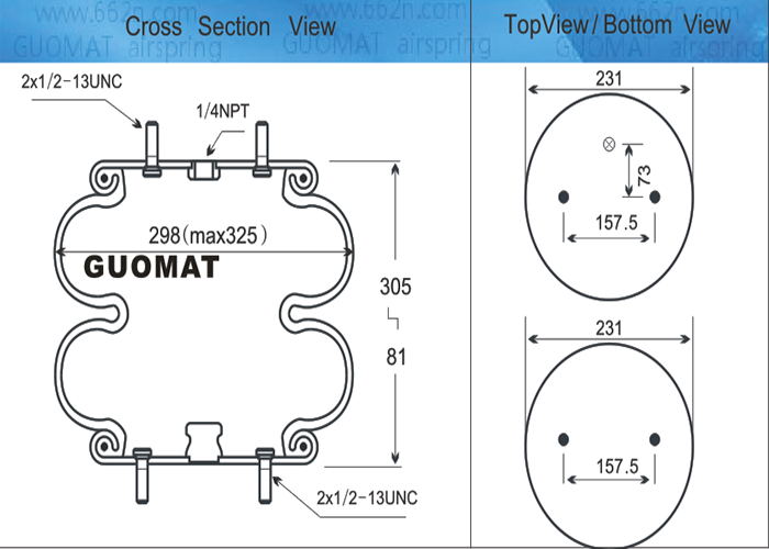 - 2B8X2/雙曲工業(yè)空氣彈簧/Firestone W01-358-7325/Contitech FD 120-17 509/Goodyear 2B8-150/2B8-153/2B8-550/2B7-5