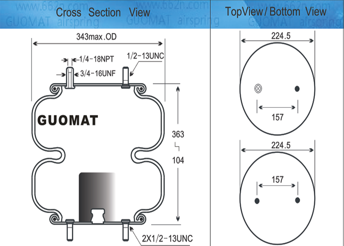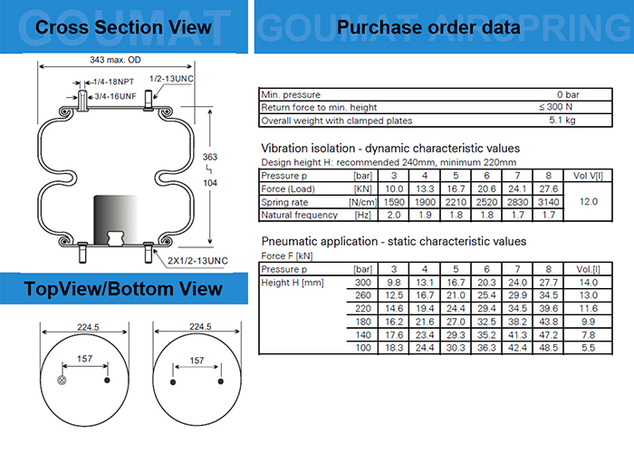 2B7555/雙曲工業(yè)空氣彈簧/Firestone:W01-358-7555/Contitech:FD331-26480/Goodyear:2B12-440/Triangle:6375/4480