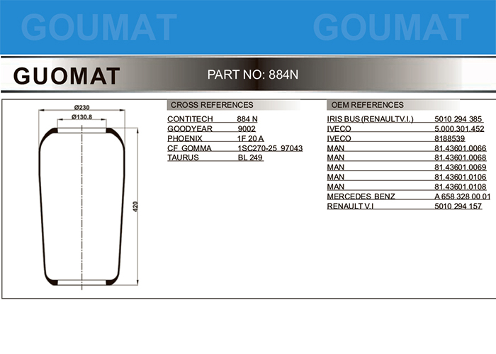 - 884N/宇通客車氣囊/小曼底盤空氣彈簧/CONTITECH 884N/FIRESTONE STYLE 1R1B-415-270/TAURUS B249/GOODYEAR 9002/PHOENIX 1